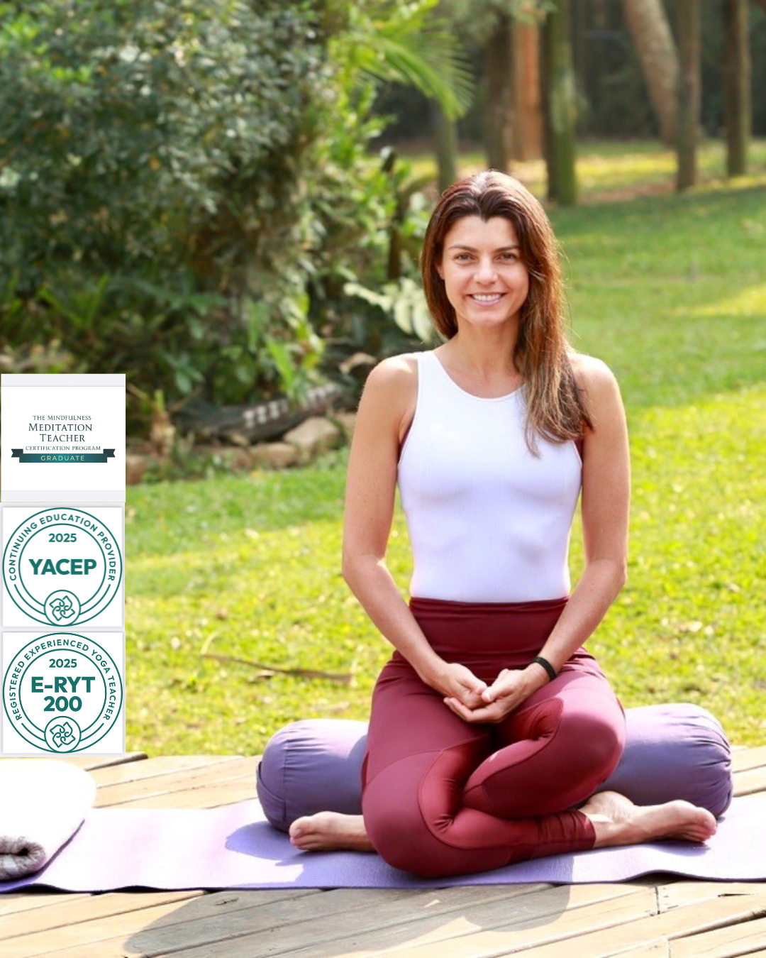 Flavia is passionate about sharing the gifts of yoga and meditation. She is Brazilian with a Swiss soul and an Italian heart. She has four children and loves cycling, skiing and walking in nature with them. She began her spiritual journey at a young age and is a Reiki Master, Naturotherapist, and teacher of Yoga, Aerial Yoga, Kids Yoga , Meditation and Pilates . With ongoing studies and specializations, she is always dedicated to evolution of Consciousness. Her journey spans continents and cultures, with over 16 years dedicated to practicing and teaching in Europe and Brazil. More than just a discipline, yoga is her way of life. Located in Basel, Switzerland, she offer a variety of yoga classes, retreats, and mindfulness programs designed to help you achieve balance and well-being choices. She believes that every detail matters on your journey to well-being. Her approach emphasizes self-awareness and mindful, guiding you to understand yourself better and make decisions nurture your mind, body, and spirit. She creates a welcoming and inclusive environment for all, regardless of experience level. Join our community and discover more about her unique approach and commitment to your personal growth.